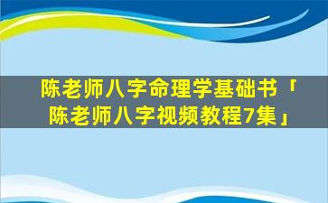 3、陈老 🐠 师八字命理学视 💮 频