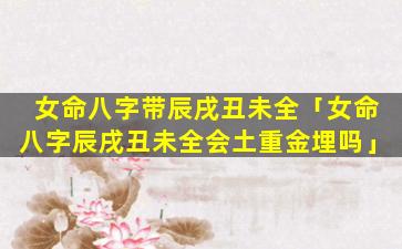 2、女 🐱 命八字辰戌丑未全会土重金埋吗