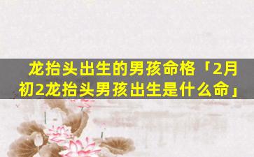 在传统民俗 🐺 文化中,农,历二月二龙抬头被认为是一个 ☘ 重要的日子出生在这个日子里的男孩子通常被认为是: