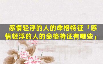 2、感情轻浮的人的命 🐬 格特征有哪些