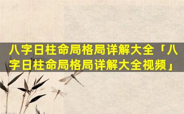 八 🐟 字日柱命局格局详解 🐴 大全视频 🐛