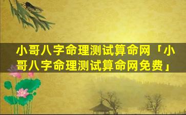 3、小哥八字命 🐬 理测试算命网官 🐎 网