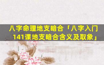 2、八字入 💐 门141课地支暗合含义及取 🦄 象
