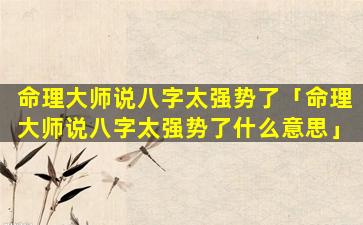3、命理大师说八字太强势了怎 🌿 么 🦆 办