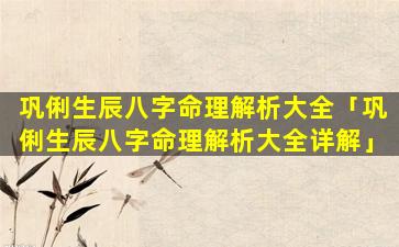 3、巩俐生辰八 🐯 字命理解析大全视频 🌾