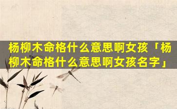 3、杨柳 🦄 木命格什么意思啊女孩子