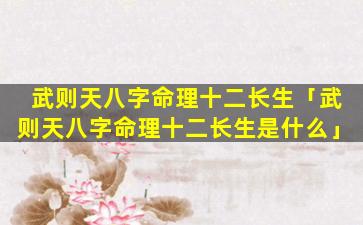 2、武则天 🐒 八字命理十二长生是什么