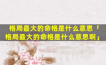 1、格局最大的命格是什 🍀 么意思