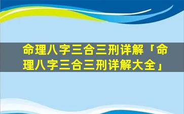 3、命理八 ☘ 字三合三刑 🌷 详解视频