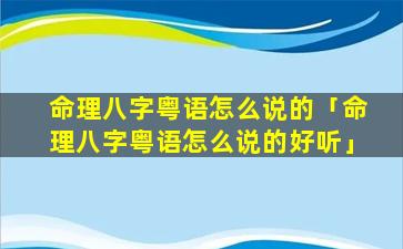 八字命理2、命理八字粤语怎么说的 🐼 好 🐕 听