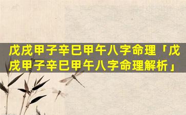 3、戊戌甲子 🌾 辛巳甲 🦊 午八字命理详解