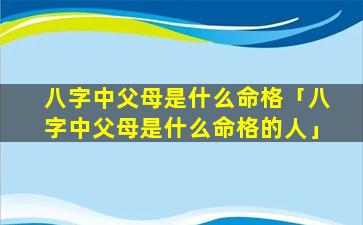 2、八字中父母是什么命 🐬 格的 🐅 人