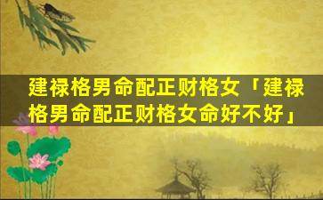 配对分析建禄格男命与正财格女 🐘 命配对,总体来说是比较合适的 🌿 :