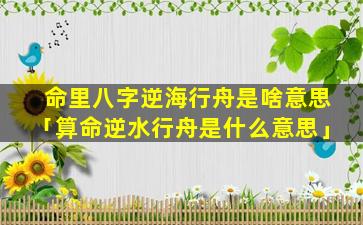 1、命里八字 💐 逆 🐎 海行舟是啥意思