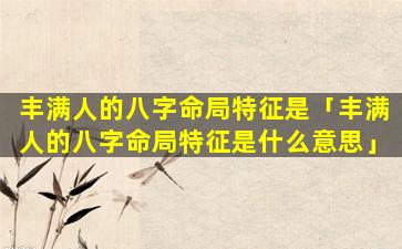 2、丰满人的八字 🦈 命局特征是什么 🐋 意思