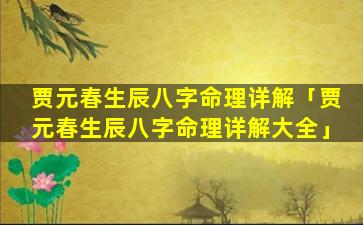 1、贾元春生辰 🌷 八字命理详解 🪴