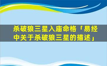 含义:"杀"破狼三星入庙命格是一个紫微斗数中的概念,指的是紫微斗数命盘中三位主星杀星破——军星、和贪狼星都位于庙旺之 🪴 位。
