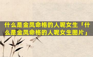1、什么是金 🌺 凤命格的人呢女生