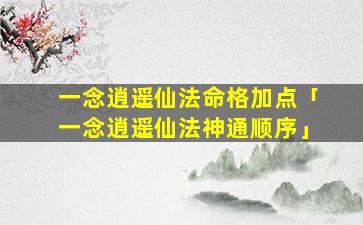 1、一念逍遥仙法命 🦋 格 🐒 加点