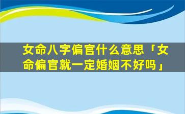 2、女命偏官就一定 🌺 婚姻不 🌾 好吗