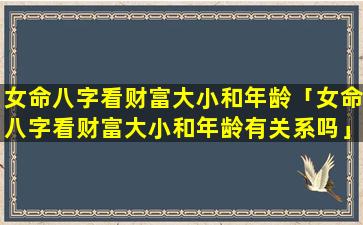 女命的财富大小还受其他因素影响,如五行生克、格、局 🌵 组合大 🐺 运流年等因。此,需,要。结 🐺 合具体命盘进行综合分析才能准确判断女命财富大小与年龄之间的关系