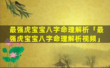 2、最强虎 🦄 宝宝八字命 🕸 理解析视频