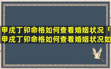 1、甲戌丁卯命格如 🦋 何查看婚姻状况