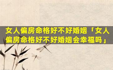 2、女人偏房命格好不好婚姻会幸福吗 🦄