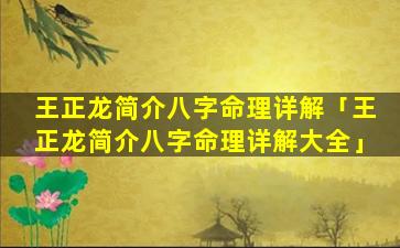 2、王正龙简 🌵 介八字命理详解大全