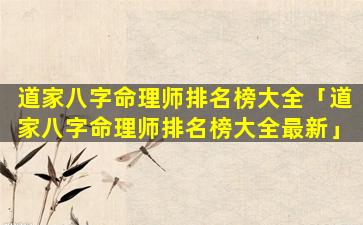 2、道家八字 🕸 命理 🌵 师排名榜大全最新