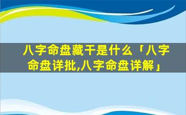 八字命 🦋 盘藏干