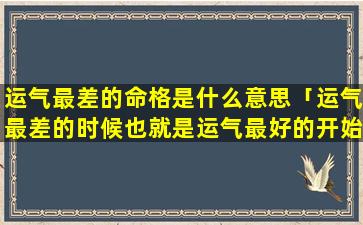 1、运 🐝 气最差的命格是什么 🌴 意思