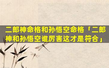 3、二 🌳 郎 🦆 神命格和孙悟空命格哪个好