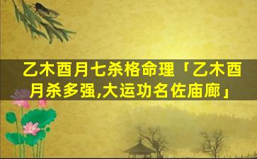 2、乙木酉月杀多强,大运 🦈 功名 🦆 佐庙廊