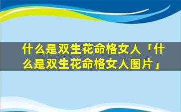 2、什么是双生花命 🐛 格女人图片