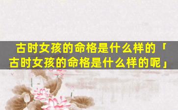 具 🐼 体来说,古代女 🦄 孩的命格通常有以下几种说法: