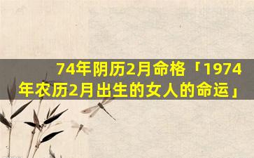 总体运势1974年农历2月出生的属虎女性,一生运势起伏不定。早年,较。为,坎,坷。但,中年。以,后 🐱 运势。逐,渐。好,转,她。们的性格刚强做事果断有很强的领导能力在事业上能够取得一 🐟 定成就财运也较稳定感情运势较晚但中年以后会有所转机健康运势尚可需要多加注意肠胃和心血管方面的疾病总体来说她们一生吉多凶少能够过上幸福美满的生活
