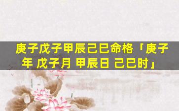 庚子 🐬 戊子甲辰己巳命 🌿 格详解