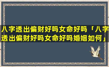 2、八字透出偏财好吗女命好吗 🌻 婚姻如何