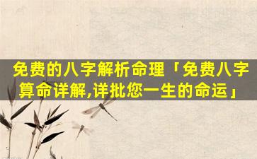 2、免 🌳 费八字算命详解详,批您一生的命运 🌳