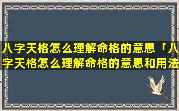 2、八字天格怎么理解命格的意思和 💮 用 🦍 法