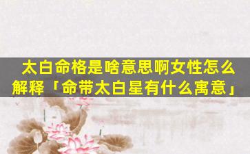 女 🐬 性太白 🐟 命格的 🐘 含义
