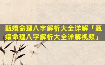 2、甄嬛命理八字解 🐱 析大全详解视频