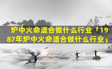 4、炉中火命适合做什 🌳 么工 🐵 作或生意?