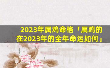 2023年属鸡 🦅 命格 💐