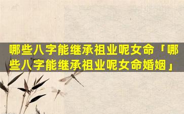 2、哪些八字能 🌹 继承祖业呢女 🍁 命婚姻