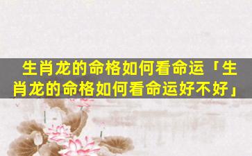 1、生肖龙 🦁 的命格如何 ☘ 看命运