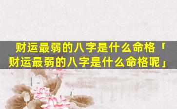 2、财运最弱的 🐵 八字是什 🐦 么命格呢