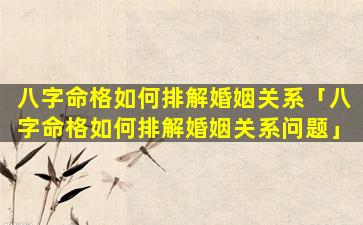 1、八 🦁 字命格如何排解婚姻关 🌹 系