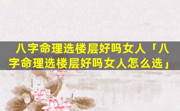2、八字命理选楼层好吗女人 💮 怎么选 🦟